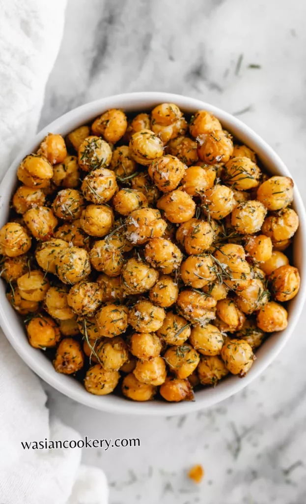 These tangy and herbaceous chickpeas are seasoned with ranch-inspired flavors for a familiar, crowd-pleasing snack. They’re perfect for parties, lunchboxes, or anytime you need a savory, crunchy treat.