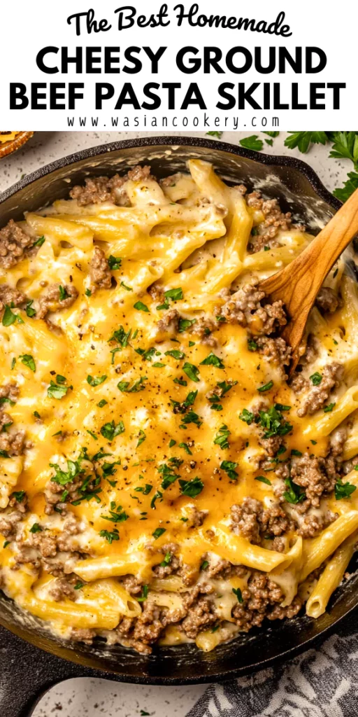 This Cheesy Ground Beef Pasta Skillet is rich, creamy, and flavorful, making it a perfect one-pan meal for any night of the week.
