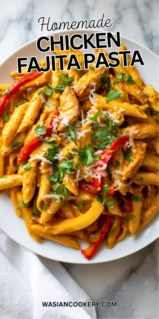 Serving this chicken fajita pasta hot and fresh is the best way to enjoy it. I like to top it with extra cheese, a sprinkle of cilantro, and a squeeze of lime. The creamy sauce clings perfectly to the pasta, making every bite rich and flavorful.