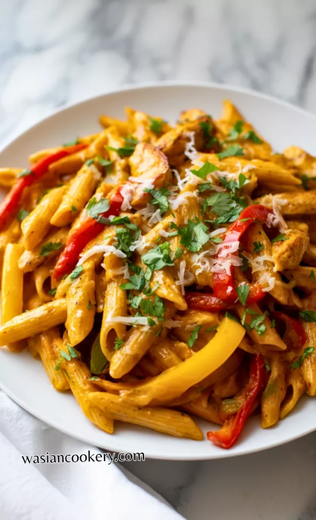 Making chicken fajita pasta is one of my favorite ways to mix things up for dinner. It has that spicy, smoky flavor of fajitas but with the creamy comfort of pasta — the best of both worlds! The combination of tender chicken, colorful peppers, and rich sauce always makes my kitchen smell amazing.