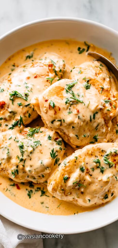 For something lighter, serve the chicken with a fresh salad, steamed broccoli, or roasted vegetables. These options balance the creamy sauce and add color and freshness to the plate. They also help keep the meal from feeling too heavy.