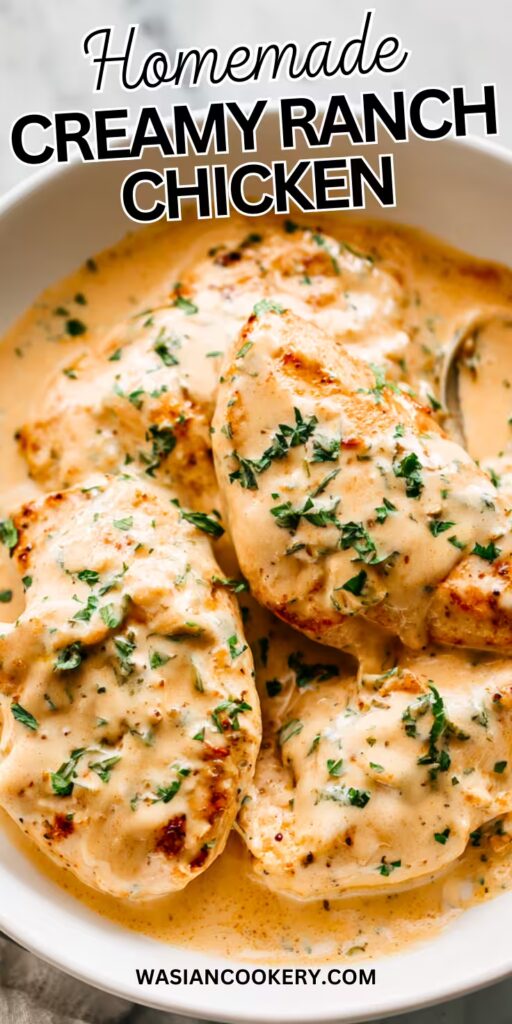 minutesThis Creamy Ranch Chicken is tender, flavorful, and coated in a rich, garlicky ranch sauce that melts into every bite. It cooks quickly, uses simple ingredients, and pairs beautifully with rice, pasta, or vegetables.