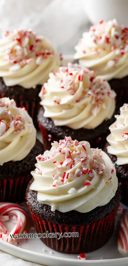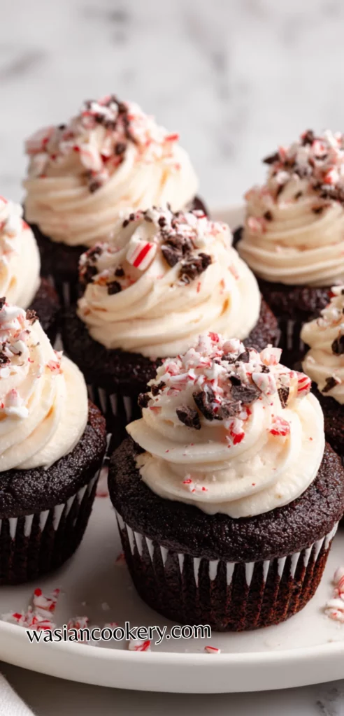 These cupcakes taste like a holiday coffee shop treat. The chocolate base is rich and moist, and the frosting carries a cool peppermint note that pairs perfectly with cocoa. A little instant espresso deepens the chocolate flavor without making the cupcakes taste like coffee.