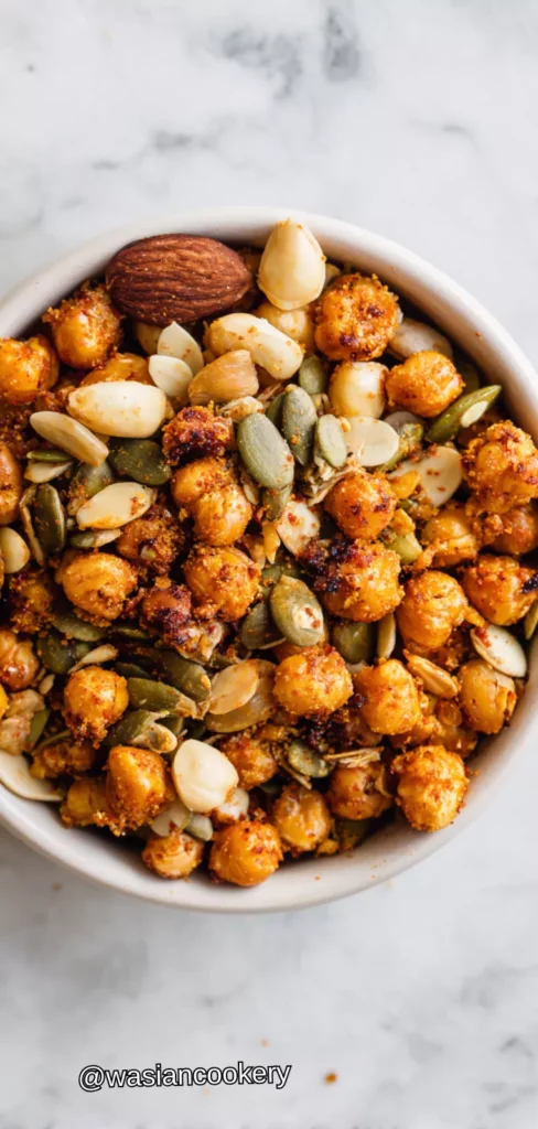 This customizable trail mix combines nuts, seeds, dried fruit, and dark chocolate for a balanced snack with protein, healthy fats, and natural sweetness. It’s perfect for portion control and provides quick energy.