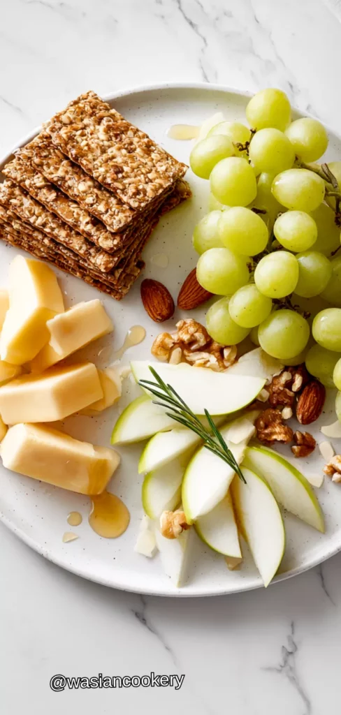 This simple but satisfying snack combines whole grain crackers, cheese, and fresh fruit for a balanced mix of complex carbs, protein, and natural sweetness. It’s easy to pack and provides sustained energy.