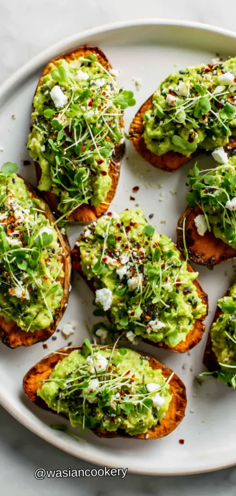 These nutrient-dense sweet potato slices are toasted until tender and topped with creamy avocado for a satisfying, grain-free snack. They provide complex carbs, healthy fats, and fiber in a delicious package.