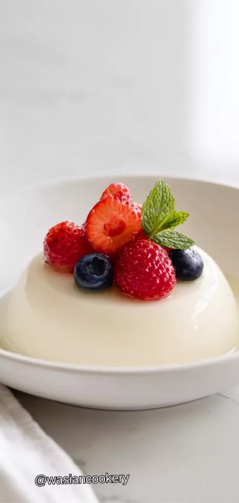 This silky Italian custard is set with gelatin and flavored with vanilla for a simple yet luxurious dessert. It’s incredibly creamy, not too sweet, and can be topped with fresh berries or caramel sauce.