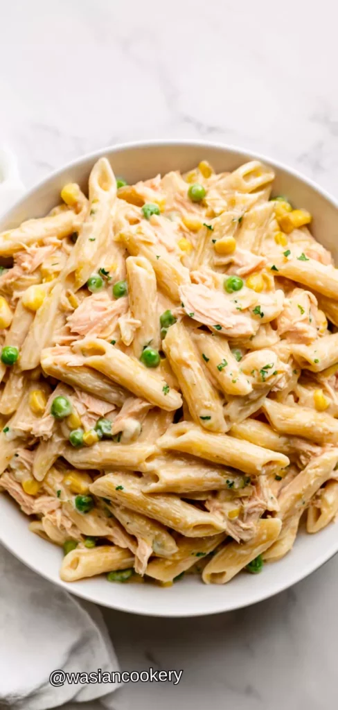 This creamy tuna pasta is a classic lazy dinner made almost entirely from pantry staples. It’s rich, comforting, and comes together quickly without complicated steps. The tuna adds protein while the creamy sauce keeps the pasta soft and flavorful. This meal is perfect for nights when you want something filling with minimal effort.