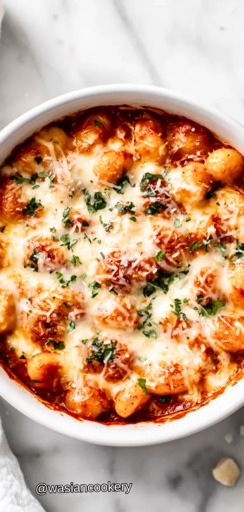 This lazy baked gnocchi with cheese is a no-fuss dinner that feels rich and comforting. It uses shelf-stable gnocchi and simple ingredients baked together in one dish. The gnocchi becomes soft while the cheese melts beautifully on top. This recipe is perfect when you want a warm oven meal without much prep.