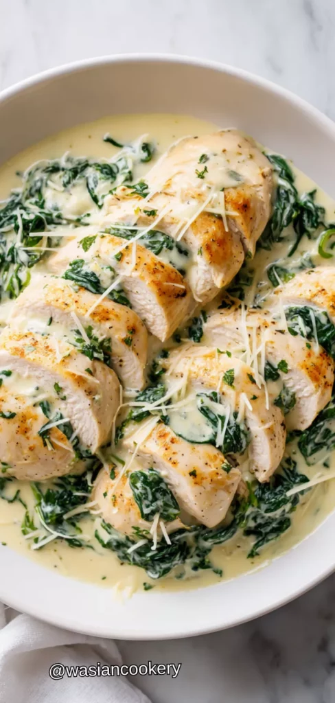 This lazy creamy spinach chicken is a comforting dinner that feels rich without being complicated. It uses simple ingredients and cooks in one pan, making cleanup easy. The chicken stays tender while the creamy sauce brings everything together smoothly. This is a great option for a relaxed dinner that still feels homemade.