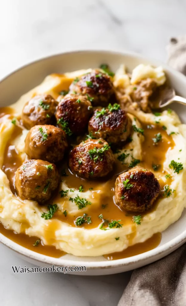 minutesThese meatballs are tender, juicy, and simmered in a rich homemade gravy that’s full of flavor. It’s classic comfort food that feels cozy and satisfying with every bite.